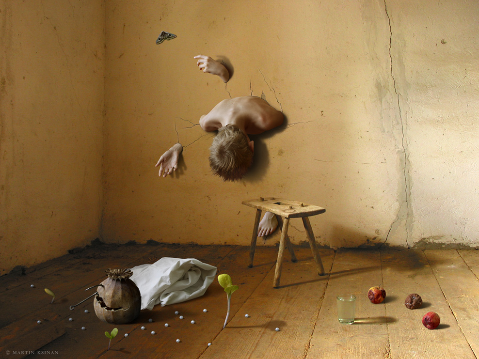 renegade - neboj, ja viem co je to kresba alebo malba. mam na to skolu :)...ako diplomovku som mal cyklus ilustracii. "poctivo" - ceruzkou na papier. to "poctivo" je v uvodzovkach naschval, pretoze mi praca s fotografiami a graf. doladenim na pocitaci nepride o nic menej nepoctivejsia ako ta ked kladies kresebne stopy na papier. to ze sa bavim skladanim objektov aj vo virtualnom priestore je vec media, ktore ma bavi a zaujima.