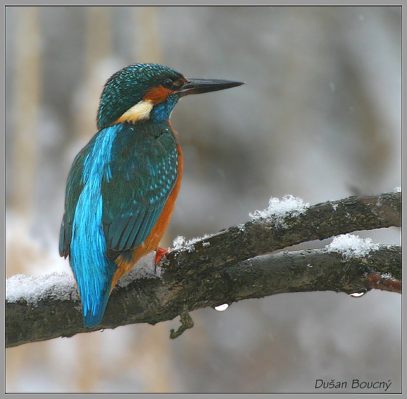 ....sněžilo, foukalo ale ledňáček, který prožívá svou první zimu, vypadal docela spokojeně. Já jsem se klepal zimou....