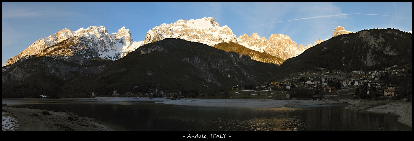 Jedna z italských Dolomit z oblasti Trento (Gruppo di Brenta), složeno z 8 fotek, fajn večer