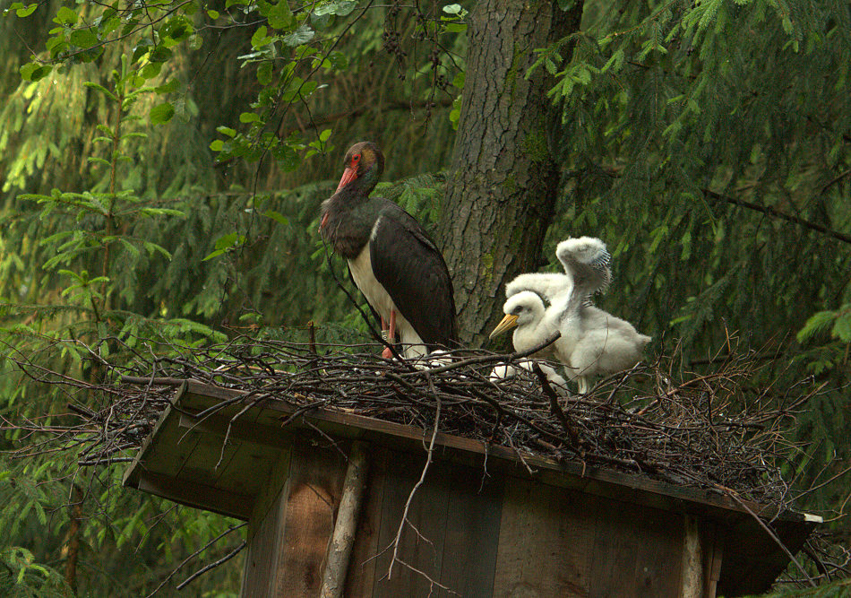 Neobvyklé umístění hnízda - hnízdění čápů černých na myslivecké kazatelně :-))