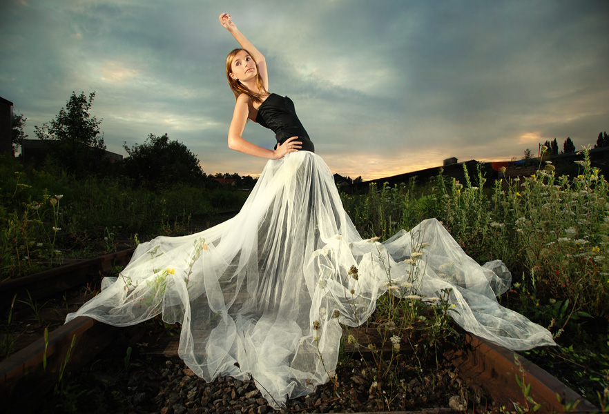 na kolejích stála zavinutá v zácloně, znuděná slečna zdraví vymrštěnou levicí :-(