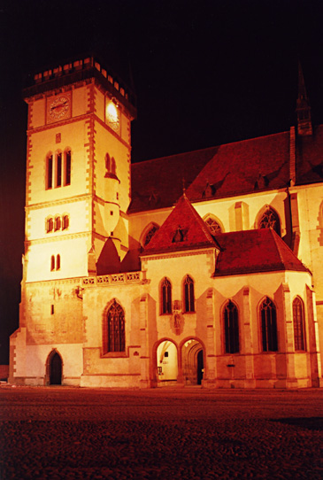 Asi bych fotil na šířku a snažil se do snímku vměstnat celý kostel.