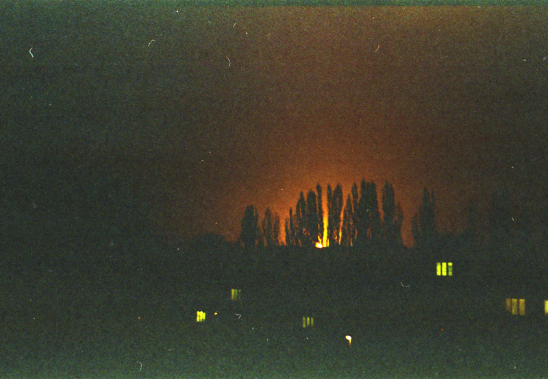 Krásně osvětlující hořící fakule v Litvínově. Lepší než měsíc. Aspoň člověk ušetří za noční svícení.