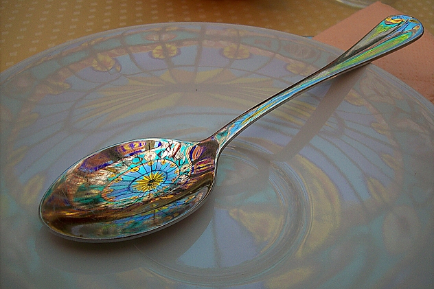 Odraz barevného stropu kavárny lázeňské budovy v Rjeckých Teplicích