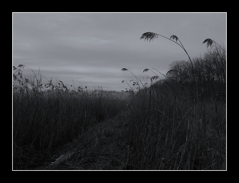 Těžký zimní podvečer, po dešti. Mlha halí pole v dáli a já blbec z nudy, fotím tyto divné bludy :)