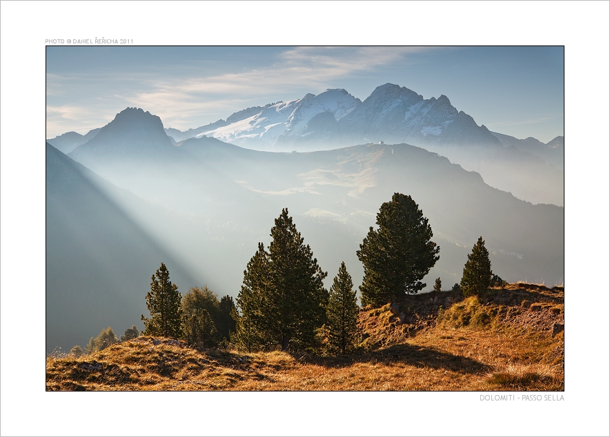 další fotografie z loňských podzimních Dolomit, který vznikl během posledního workshopu v této fotegenické oblasti. Konkrétně se jedná o ranní snímek z průsmyku Passo Sella.