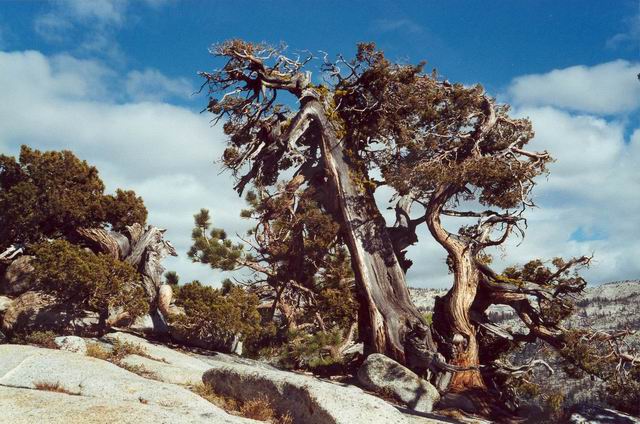 V Yosemitských horách to někdy setsakramentsky profukuje, ale borovice se jen tak nedá!