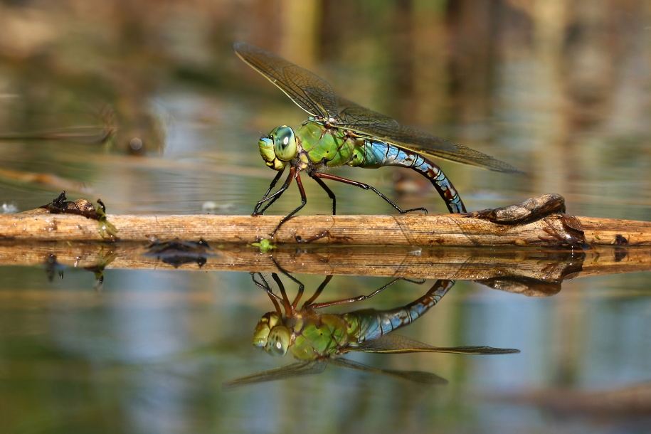 Už se to pomaličku blíží,tak jedna vzpomínková na loňskou vážkařskou sezónu. Kladoucí samička šídla královského(Anax imperator)