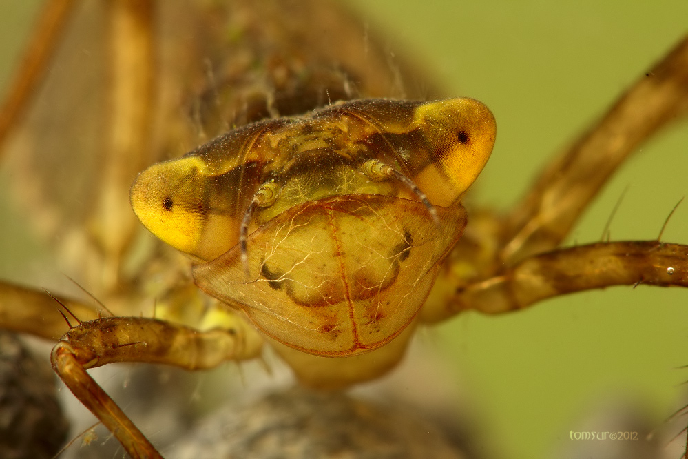 Larva vážky fotená v prenosnom akvárku. V takejto forme žijú vážky oveľa dlhšie ako v tej v ktorej ich všetci poznáme. Ako larvy žijú 1 až 5 rokov a ako dospelce väčšinou,len niekoľko týždňov.