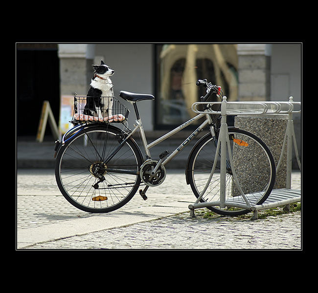 BTW všimněte si, že kolo není zamčené, pejsek je zřejmě výborný hlídač a obranář :-)