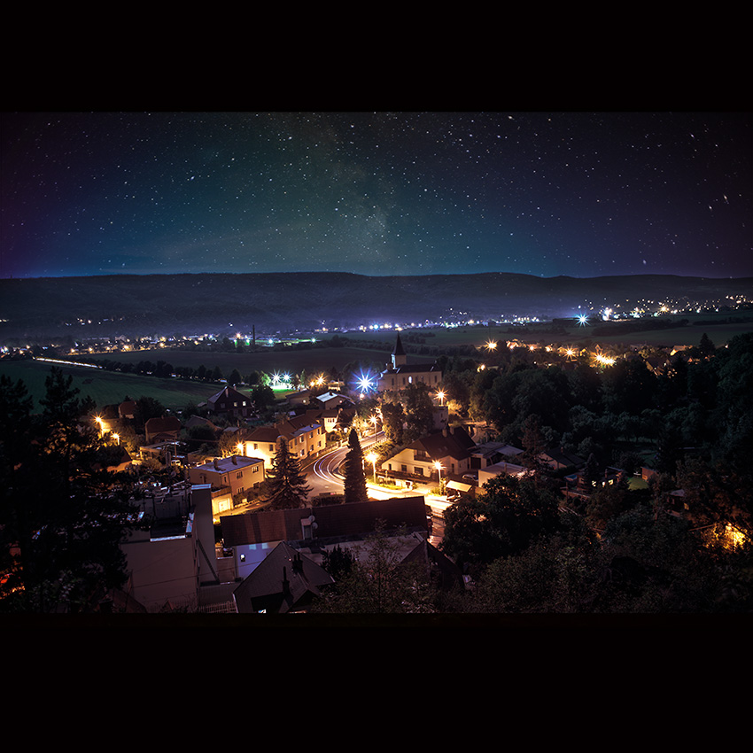 Středočeská obec Karlík o půlnoci.