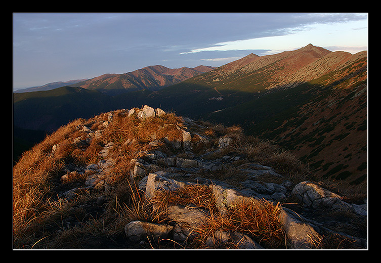 Svitanie...o troch dnoch slapania v hmle...vpravo Ďumbier a Chopok