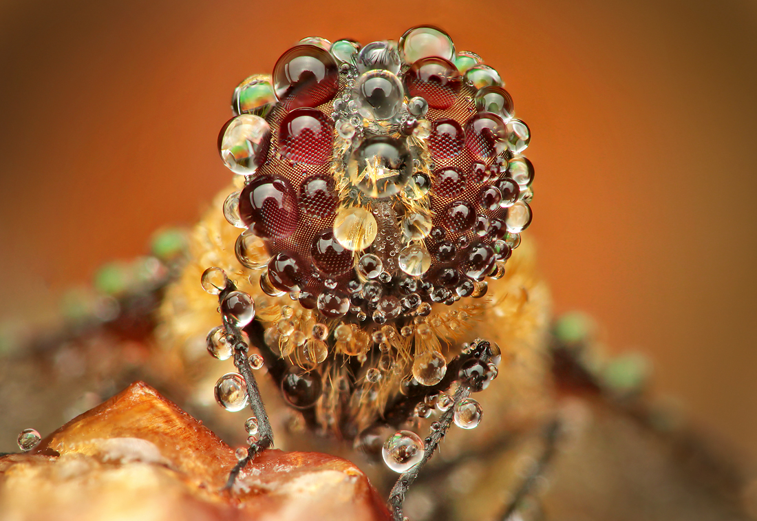 Prepracovaná makro-gýčovka, ktorá technicky trochu vyčnieva spomedzi ostatných fotiek v súťaži. Väčšina laikov by sa spýtala "čo to je?" a "ako je to možné?", mne sa natíska otázka "prečo to vôbec autor fotil?" Tému podľa mňa fotka nevystihuje a výsledok by bol o 100% krajší s prirodzeným pozadím a v prirodzenom svetle, možno s inou muchou ak táto sedela v neatraktívnom prostredí. Táto mucha hovorí: "Takto vyzerám v rannej rose keď za mňa niekto dá farebný obrázok a blysne mi do očí bielym softboxom"...