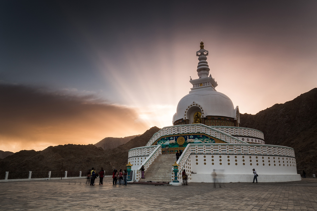 Shanti stupa - Japonská Buddhistická stupa postavená japonskými mnichy v Lehu v hlavním městě Ladakhu na podporu světového míru.