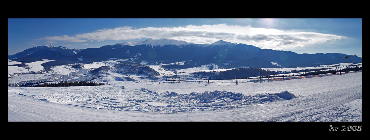 Panorama Roháčů letos v únoru - polarizační filtr a Panorama Composer + retuš několika otravných lyžařů