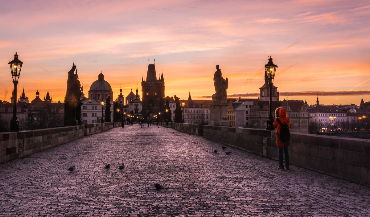 Praha , Karlov most - tesne pred východom slnka . Zložené z 3 expozícií (bracketing)