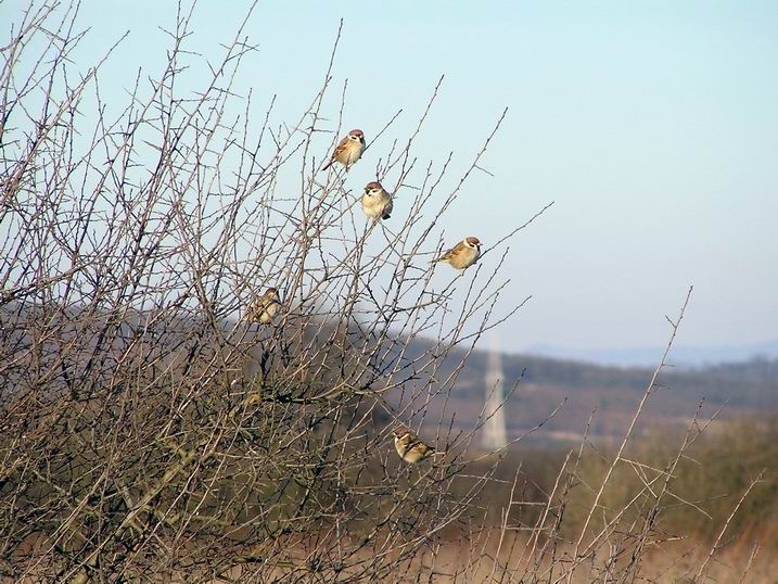Pěkní vrabčáci, ale je to příliš světlé a toho roští je příliš!