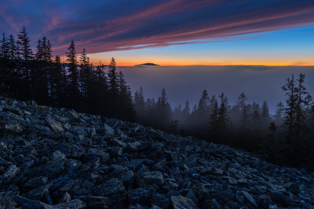 Cestou do údolí, jsem už jen procházel okolo mého oblíbeného místa. Bylo to opravdu dlouho po západu slunce. Nakonec jsem se nechal zlákat zbytkem barev na obloze a udělal fotografii.