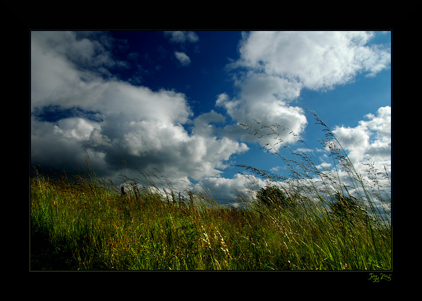pekná obloha, ale spodok mi pripadá už dosť ťažký, je tam toho dosť veľa, skúsil by som to komponovať bez tých stromov vzadu, len čisté trávy...