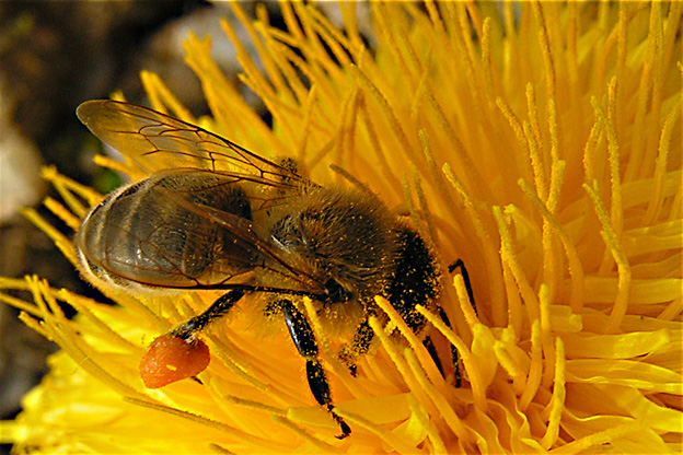 Včielka so svojim nákladom peľu