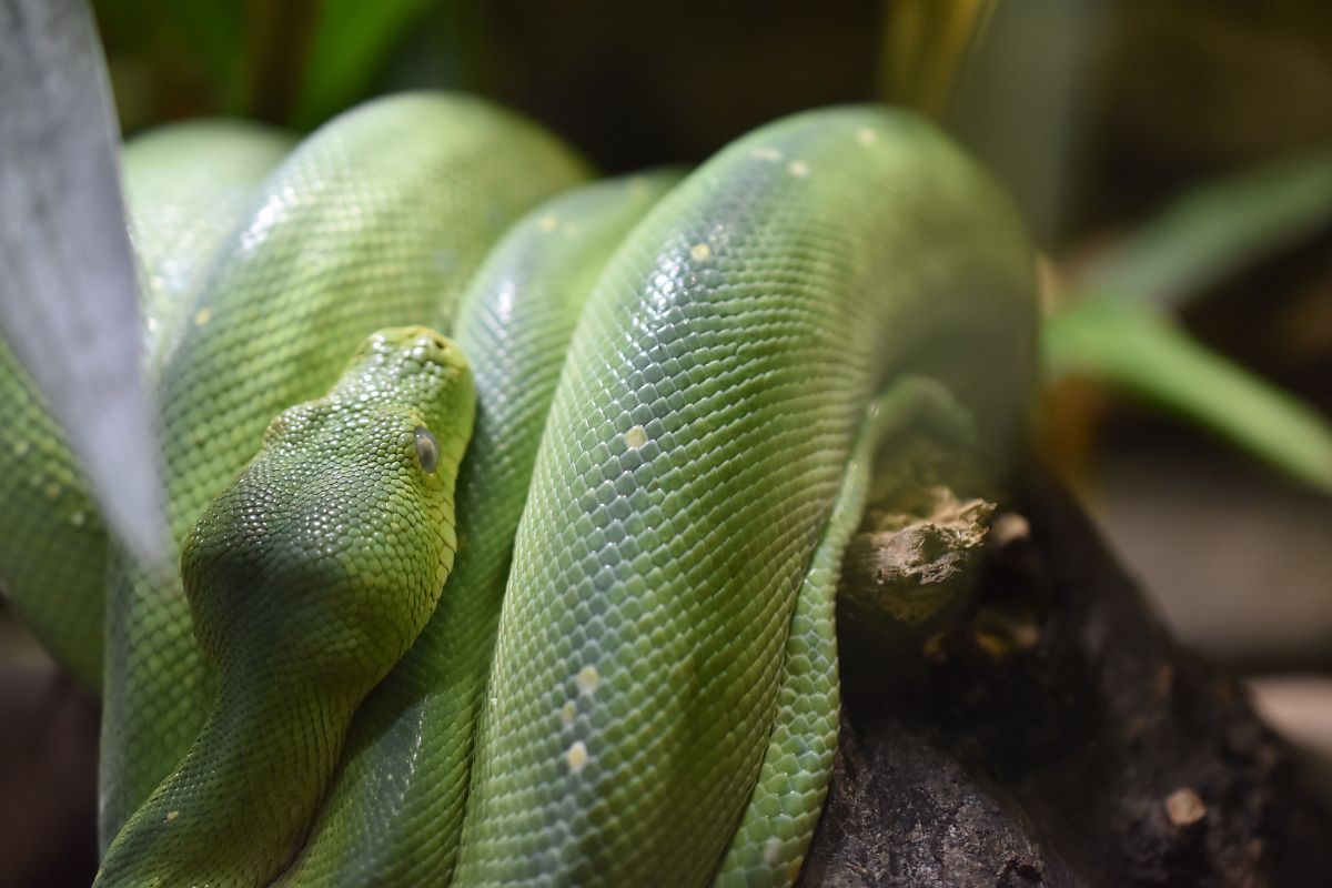 Krajta zelená (teda doufám :)) vyfocena v Zoo Ostrava při základním kurzu focení - zkoušeli jsme fotit přes sklo s manuálním ostření.
