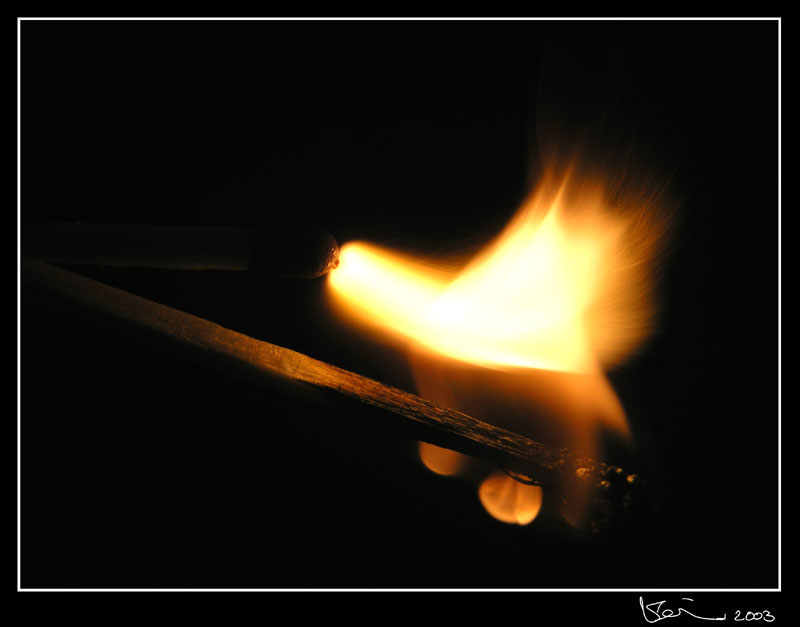 Pratele, tak tohle byla tvrde ziskana fotka. Nafotit jak se zapaluje druha sirka od prvni je temer nemozny! Zkousel jsem to asi 150x. A taky bych chtel podekovat J. Fischerovi za pomoc, protoze bez nej by to neslo!