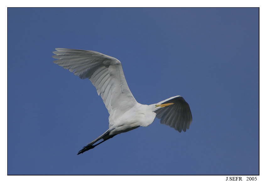 akorat bych rekl, ze je to volavka bila - great egret.To podle toho oranzoveho zobaku.