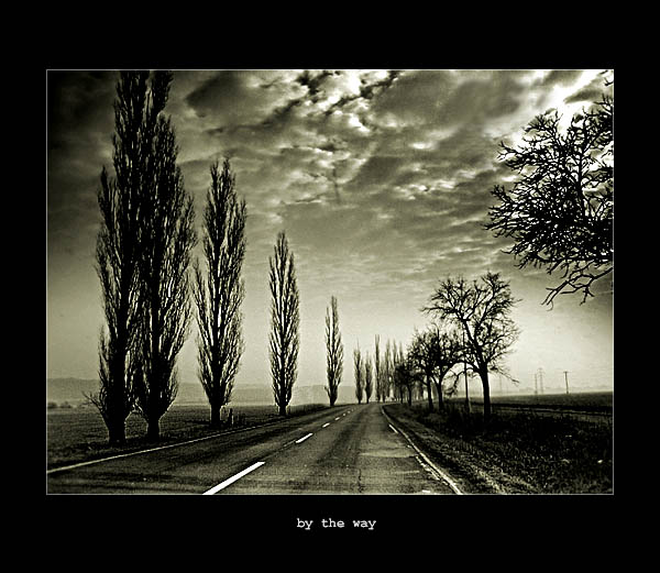 chvili jsem koukal jako pako,ale pak mi to doslo :)),ze tve fotky tak trochu znam.. tahle je fajn a jestli se jmenuje by the way,nebo u cesty,nebo mimochodem,nebo neben die Reise,nebo.. :)) je to fuk,protoze kazdy pochopi,co tim chtel fotograf rict z fotky!!! :)