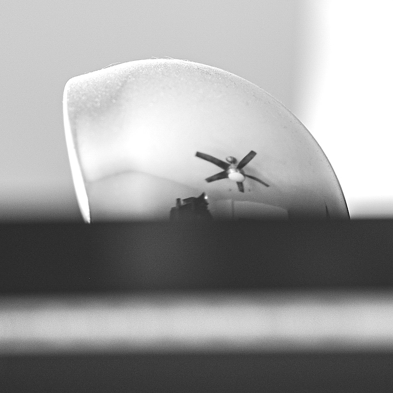Co tohle je? Odraz větráku na stropě v čemsi?
