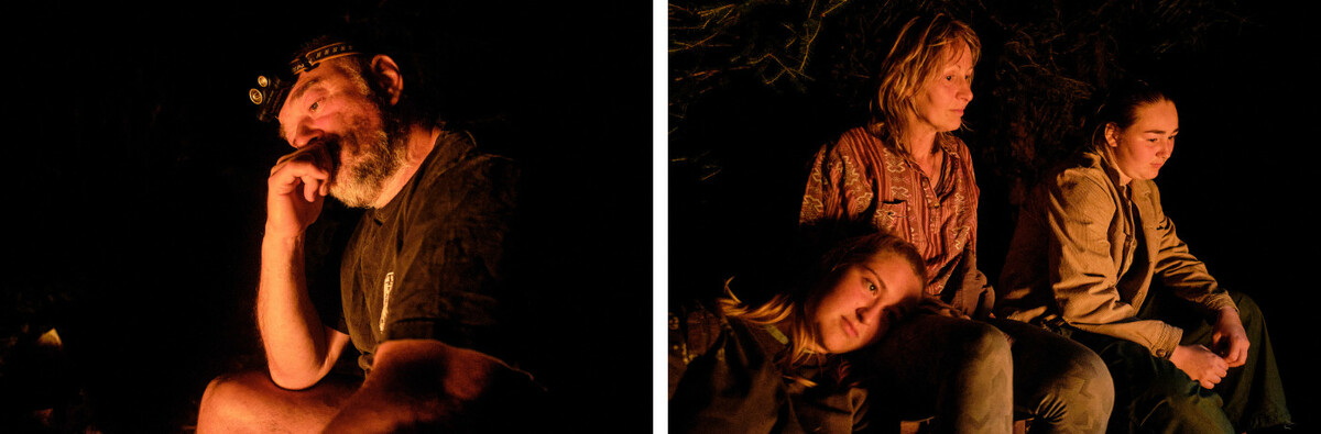 Možná, že všichni nesedí u jednoho ohně, ale pán vlevo je někde o tisíce kilometrů dál a myslí na svoji rodinu u svého ohně, zatímco rodina zas vzpomíná ve stejnou chvíli na něj. Ten oheň funguje zárveň i jako symbol rodiny formou udržování ohně v domácím krbu, aby vzájemná láska neuhasla. Nejspíš tam vidím víc než jsi i zamýšlel, nevím, ale už se mi až tolik nelíbí zpracování. Chtěla bych osamělému pánovi trochu víc vidět do tváře a ležící dívka na pravém snímku má oko úplně ve stínu což na mě působí až strašidelně.
