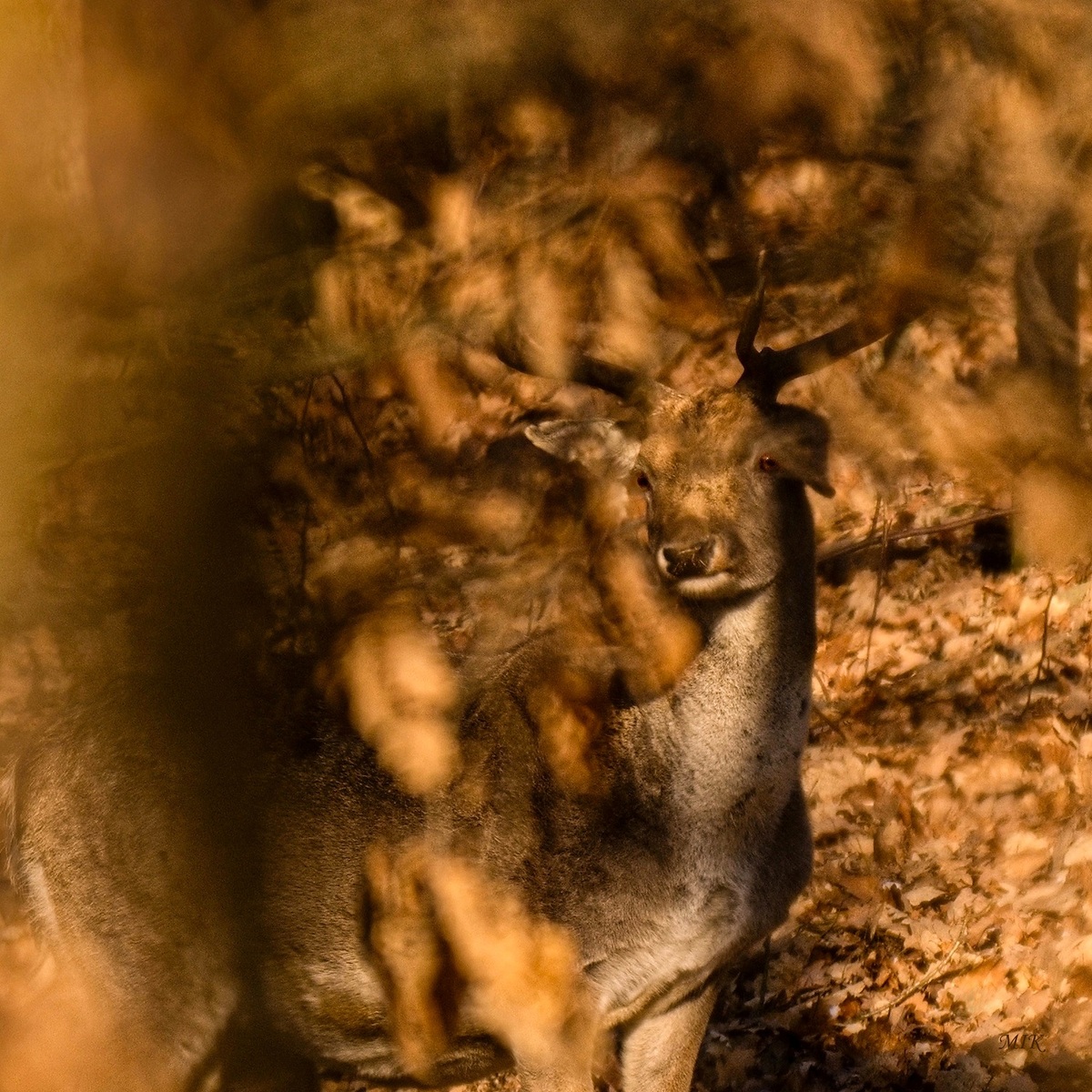 Daněk se v tom listí maskoval poněkud více než bych si já přál, ale marný pokus o jakoukoli domluvu... Po stisknutí spouště ihned zmizel v lese. Díky za zájem. :)
