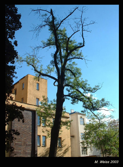 Mě napadá jen to, že něco podobného jsem viděl ve Francii u jednoho hotýlku... skrytý nápis za stromem mě docela ruší dojem z celého stromu. Strom jako takový je ale zajímavý - něco listnaté, něco holé, ten už si užil svoje...
