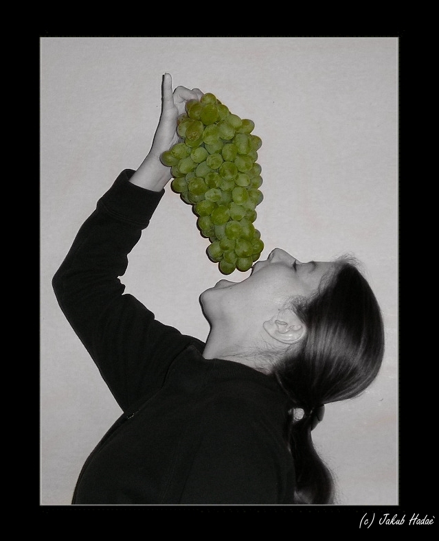Ahoj Kristýnko, nebo Jakzbe, nebo kdo je vlastně autorem, nebo je Kristýnka Tvá přezdívka? No, k fotce: jednak je to s bleskem a to já extrémně nerad, je vidět tenký stín kolem winlejdy i kolem vína, tím je i ploché pozadí a celkové vyznění fotky není dobré, protože převod do BW pomocí desaturace-zřejmě-není dobře proveden. Za další-nahoře máš zbytečně volného místa, preferoval bych radši víc dole a za další mě to neoslovije. Je to jako fotka do domácího alba. Normálně bych dal trojku, ale ten blesk-za něj ještě jeden bod dolů. Čauec Taffey.