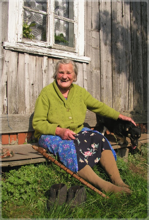 Přesto, že je v pokročilém věku a nemůže dobře na nohy, měla během našeho setkání skvělou náladu, dala mi napít vody a seznámila mě také s jejím psíkem Punčou ( u nás zřejmě Punťa :-)
