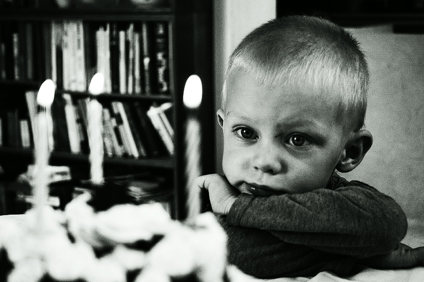 myslim, že na tejto fotce patří k hlavnímu objektu (chlapci) i jeho dort, ten je ale totálně mimo hloubku ostrosti, což je trochu na škodu... chápu ale že v interieru bylo nutné použít min. clonu kvůli světlu...tj, fotil bych ze stativu a více bych clonil cca 5