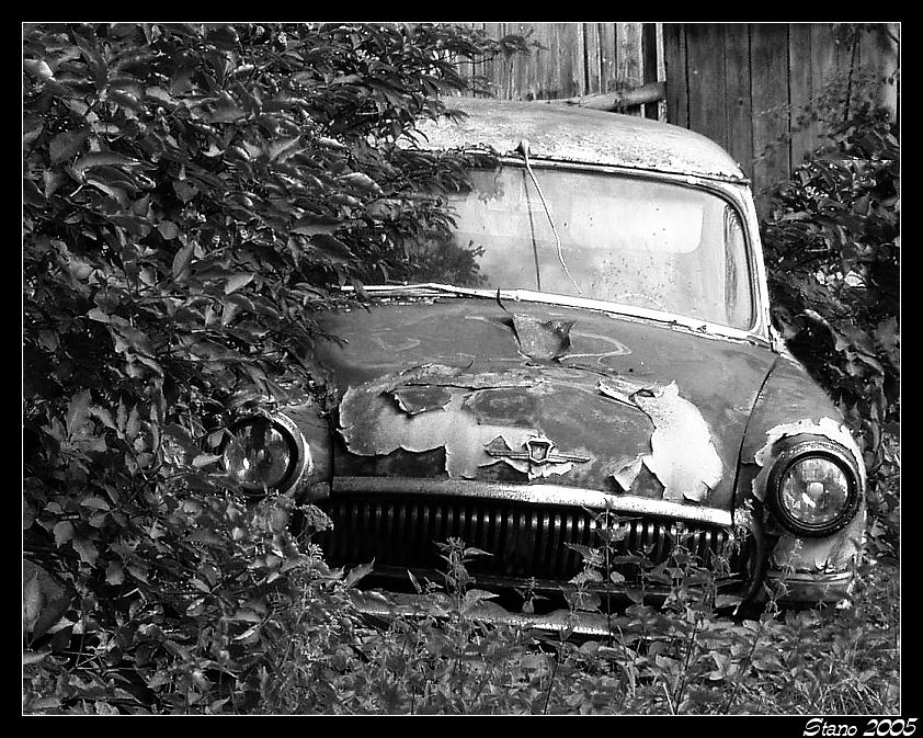 :)) Neco podobnyho jsem taky videl, na jedny vesnici super prorezlej Wartas na bok povalenej a oprenej o kul. Byl porostlej mechem a vyapadal uzasne. Akorat ze nez jsem se odhodlal tam dojit nekdy s fotakem tak uz byl pryc..