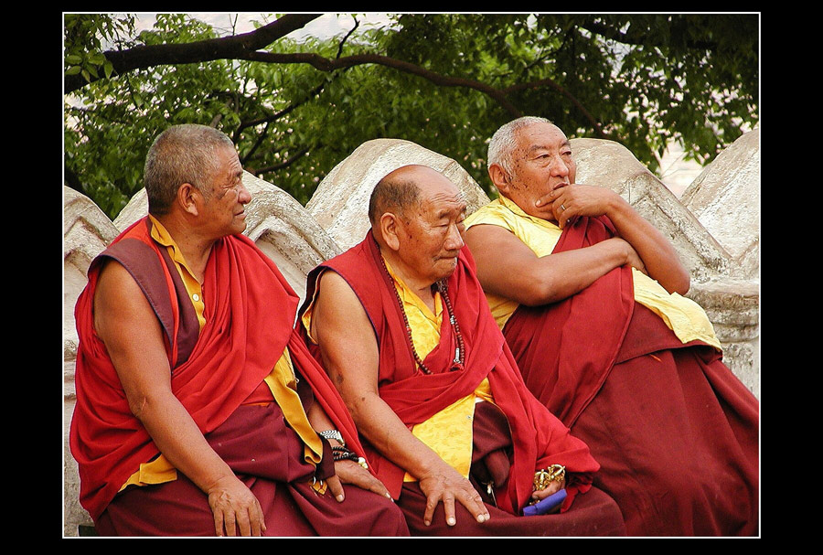 Takže další foto z Nepálu. Tentokrát jsem fotil mnichy z kláštera Monkey Tample, který se nachází přímo v Kathmandu. Fotka je pořízena odpoledne. Buď jsou na odpolední siestě ,ale pravděpodobnější mi připadá, že dohlížejí na pořádek , protože naproti nich je kruhový ochoz plný modlitebních mlýnků.