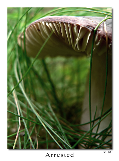 moc se mi líbí DOF, ale ostrost je podle mne špatně... pokud se to jmenuje tak, jak se to jmenuje (a že se mi to líbí - i s názvem), tak by podle mne měla být dokonale ostrá ta tráva, co houbu obepíná... což, alespoň v mých čích, není...