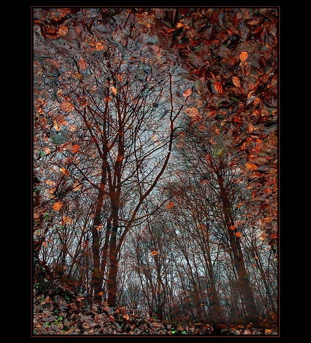 Vela mojich znamych akosi nevie identifikovat, co presne na tejto fotografii je, tak dodatocne poznamenavam, ze je to fotene cez jeden uprsany vikend, kedy sa tvorili v lese na zemi taketo mlaky a ja som si s polarizacnym filtrom trosku pomohol a zvyraznil odraz v jednej z nich..