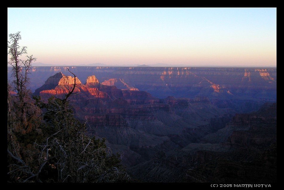 Západ nad Grand Canyonem focený z vyhlídky na jeho severním okraji