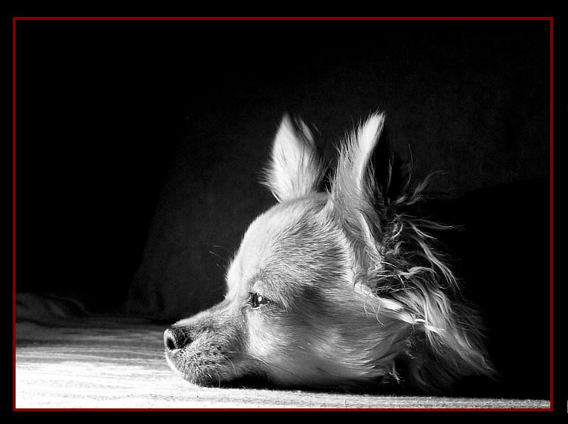 5/6 vítej na FA, pejsek je krásnej,nasvícení též, jen souhlasím s předchozími - ten rámeček je trochu moc dominantní (ale to též nehodnotím) ;o)