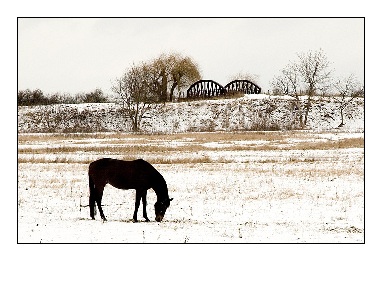 název vysvětlím - koně mám rád a v pozadí je starý Želčínský most přes kanál, postavený za císaře pána s dvěmi starými vrbami, bohužel ulomenými ve vichřicích před 5-ti lety. Oblíbené místo, kam jsme na prskoletech jezdili kouřit svoje první cigára...