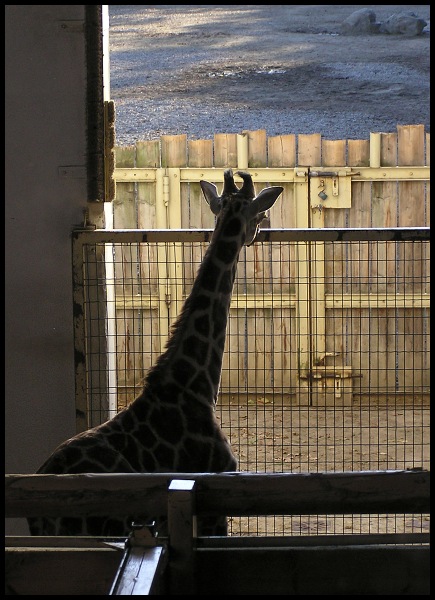 A že ta žirafa má položenou hlavu na té kleci?