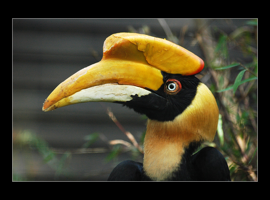 Jestli se nepletu, tak je to Zoborožec nosorohý, žijící v jihovýchodní Asii. U nás ho najdete třeba v Pražské zoo.