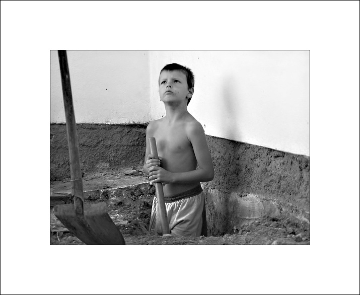 Tak tahle je o moc lepší...opět Ti teda vytknu levitujíci lopatu a trochu fádní kompozici, ale zase má ten klučina moc fajn "pracovní" výraz...praví pracanti mívaj zcela jinej...třeba já... :-))
