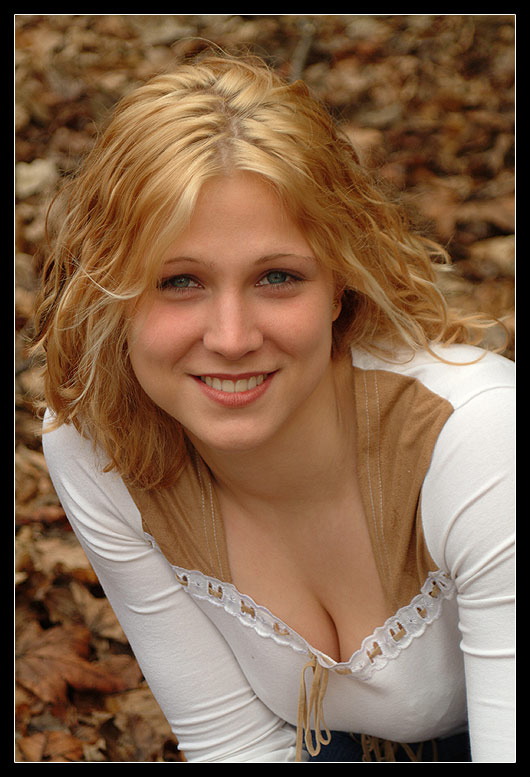 Pěkné, více bych si pohrál s výřezem (ne že by se mi ňadra slečny Báry nelíbila, ale je viditelný vzorek podprsenky a ten ruší spolu s odchlípnutou halenkou ve výstřihu) - zkusil jsem si spodní část zakrýt a připadala mi fotka hezčí (ale jsem si vědom subjektivity mého názoru). Ostatním poradím - najděte si foto Bára I. - stojí to za to...