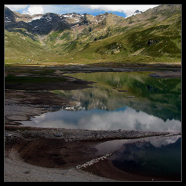 je pravda, že kdybych neviděla vzadu miniaturní chalupy, tak mi celé jezero připadá jako veliká kaluž, možná to chtělo něco do popředí, čím by se zvýraznila hloubka, hezkej odraz na hladině :-))