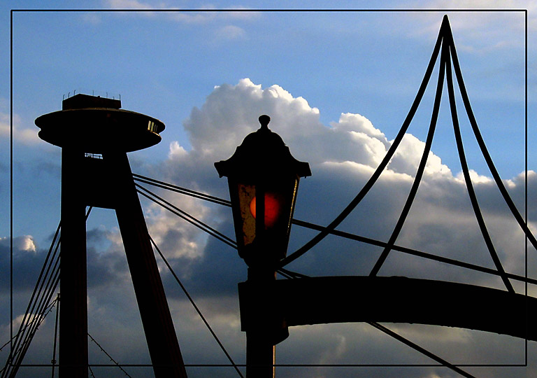 Tym, ze je tu lampa a most skoro v jednej siulete, tym my islo o iny pohlad n most, ktory denne vidim. Pride mi to zaujimave, take poprepletane.Preto aj ten ramik.