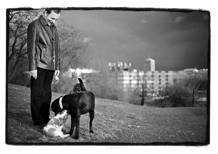 ...líbí se mi výraz toho pána...jak s láskou hledí na čtyřnohé přátele :-) Nelíbí se mi rámeček...