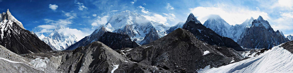 Ledovec Baltoro s K2, Broad Peak a masivem Gasherbrum
